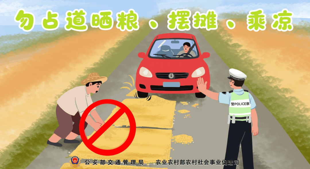 在公路上打场晒粮的行为,不仅影响过往车辆正常通行,还会给道路交通和自身带来极大的安全隐患。