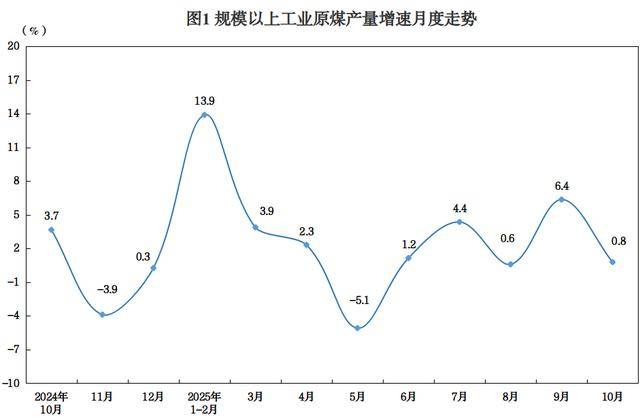 原煤生产同比微增,与上月相比增速放缓。10月份,全省规模以上工业原煤产量913.00万吨,同比增长0.8%,增速比9月份降低5.6个百分点,日均产量29.45万吨。