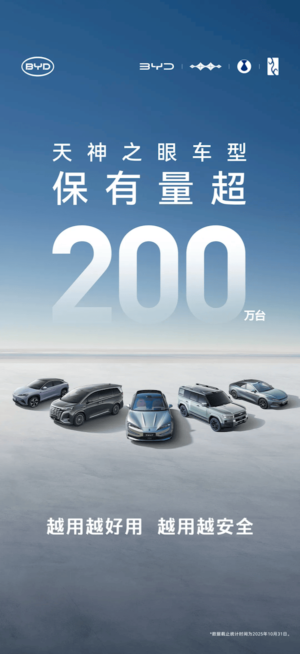 快科技11月15日消息,近日,比亚迪宣布“天神之眼”智驾车型累计销量突破200万辆。