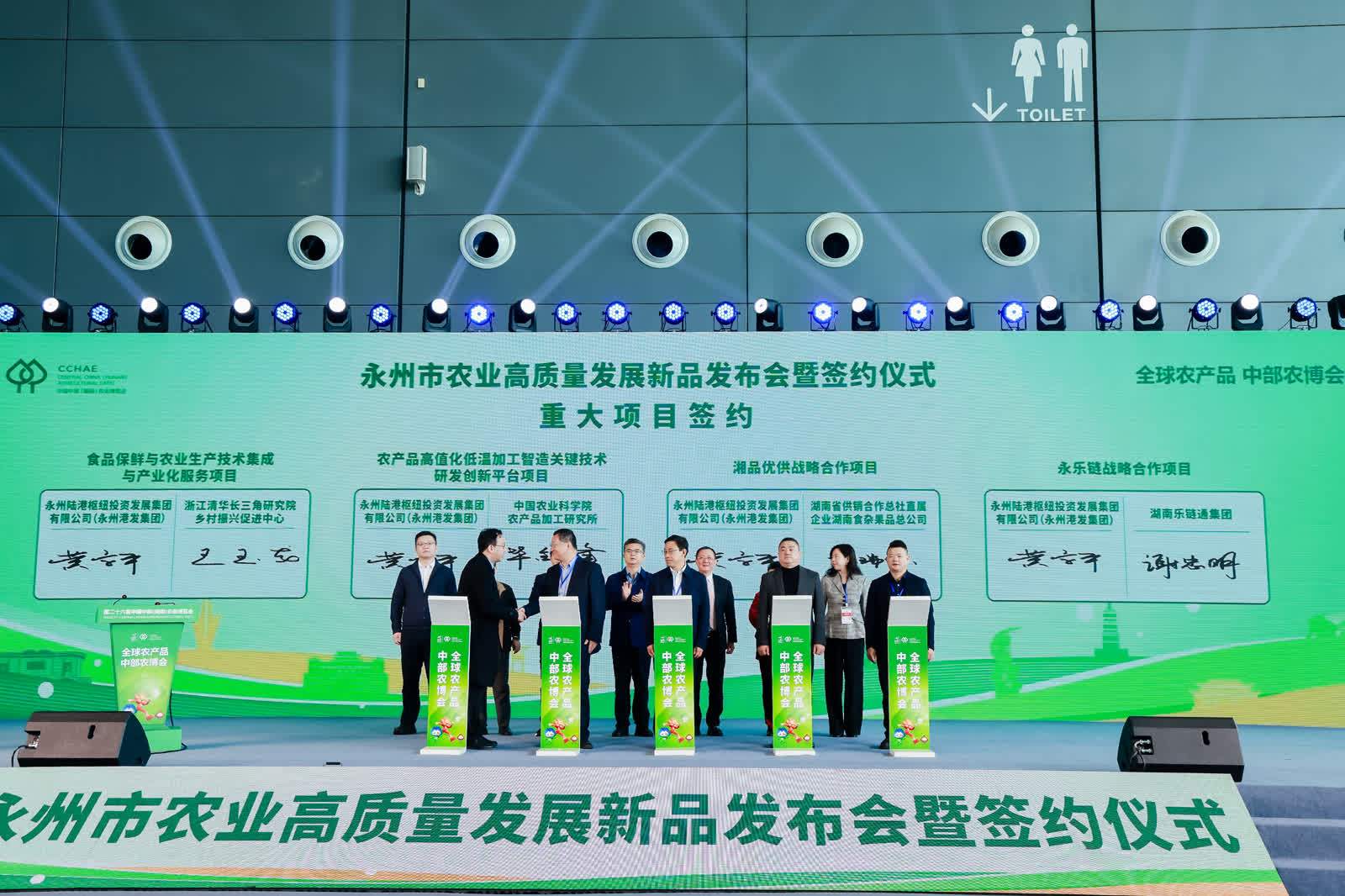 签约环节共达成合作项目11项,总金额11.5亿元。永州港发集团与湖南省供销社、浙江清华长三角研究院、部分商超代表签约;中国农大与尚道生物进行技术合作项目签约;步步高集团、新田东升农场、市商务局三方进行供港蔬菜合作签约;步步高集团与江永县云雾山农业开发有限公司进行香柚采购签约;湖南省鑫恒荣农业发展有限公司与祁阳市人民政府蛋鸡产业园项目签约;湖南东安雄雉食品有限公司与长沙合作商签约。此次系列签约,有效推动了农业科技成果转化与农产品加工技术升级,打通了从产地到商超的直销通道,促进了养殖产业向标准化、规模化方向发展,并助力非遗美食实现产业化与品牌化升级,为永州农业高质量发展注入了新动力。永州作为全国蔬菜出口的主力军,播种面积稳定在300万亩以上,2024年全市果蔬出口货值达138.9亿元,稳居全国地级市之首。在“蔬十条”政策支持下,永州已建成238个粤港澳大湾区“菜篮子”基地,蔬菜出口额占全省87%以上,供港蔬菜量占全国一半以上,并远销阿联酋等35个国家和地区。凭借从田间到餐桌的“供港标准”全链条管控,永州蔬菜已成为高品质的硬核代名词。