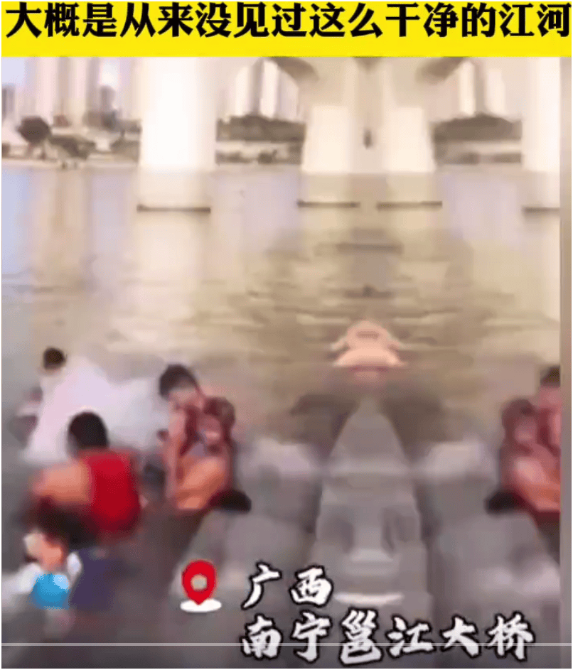 比如印度人在广西南宁附近邕江大桥洗澡。