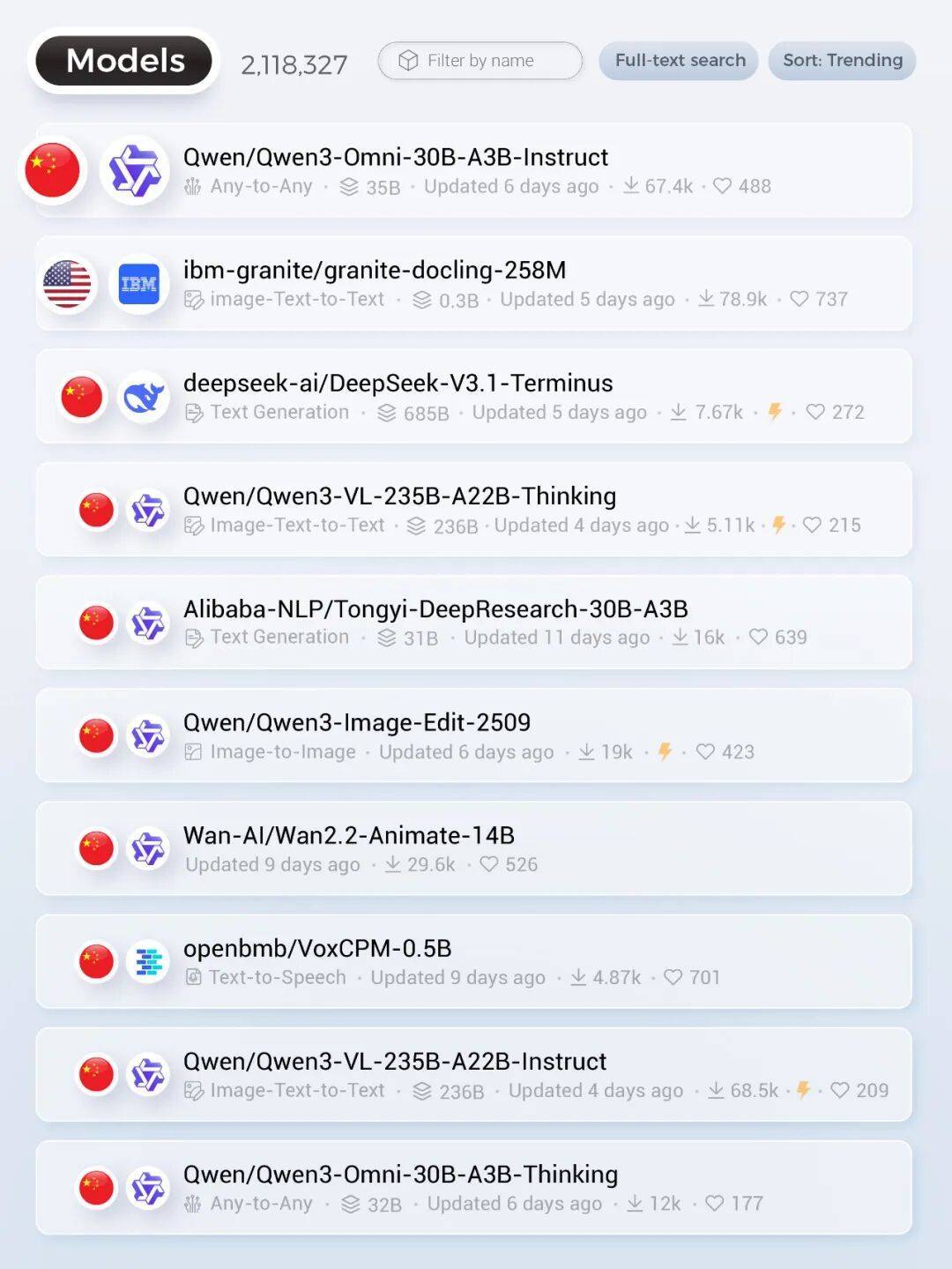 千问占据HuggingFace全球模型榜单前十中的七席