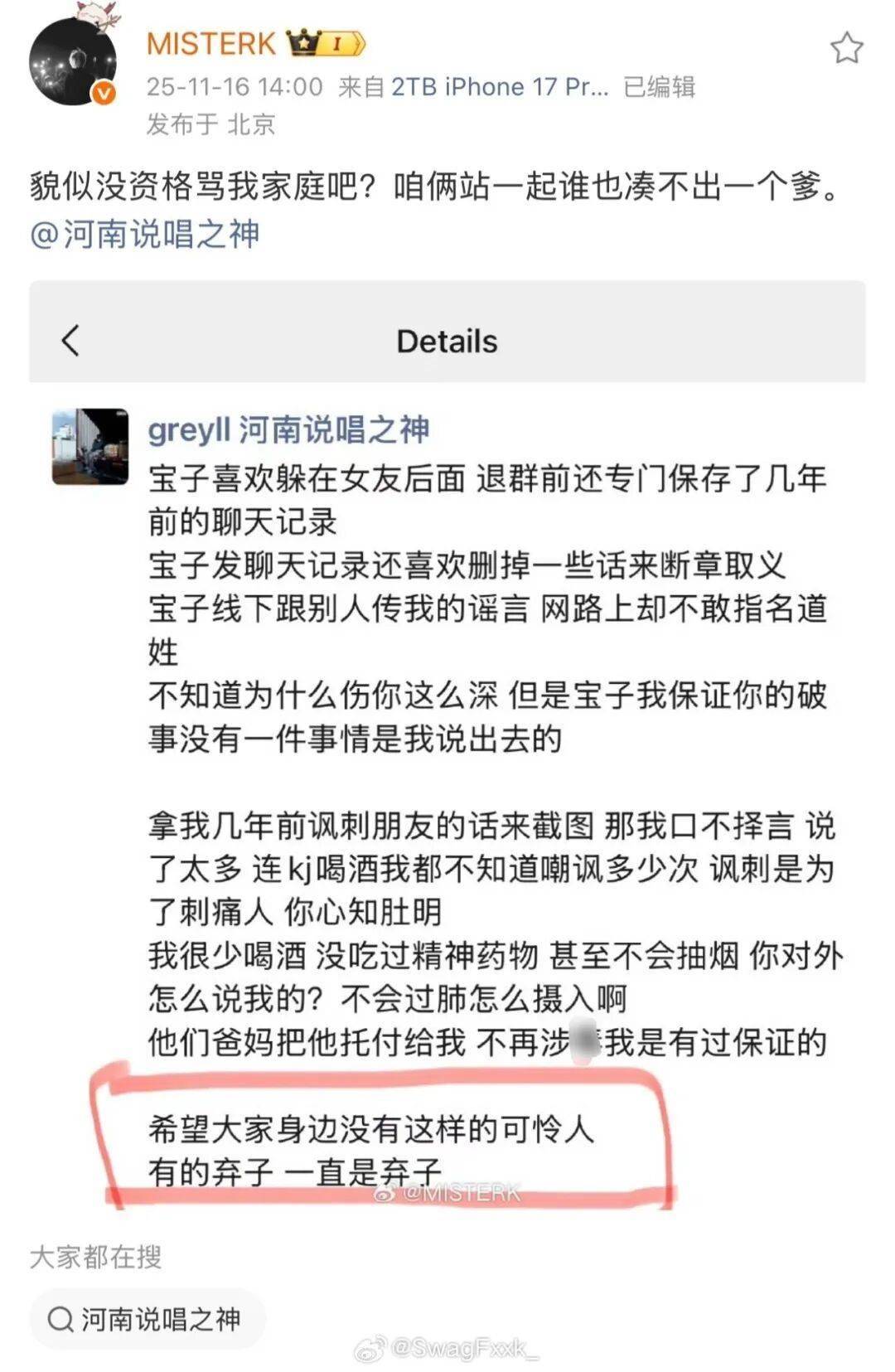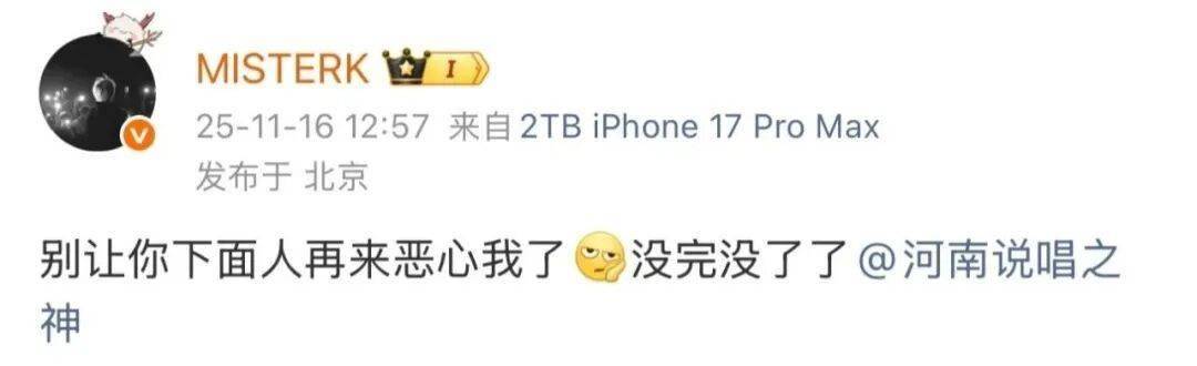 结果,MISTERK也晒出了河南说唱之神的朋友圈,并再次开怼!