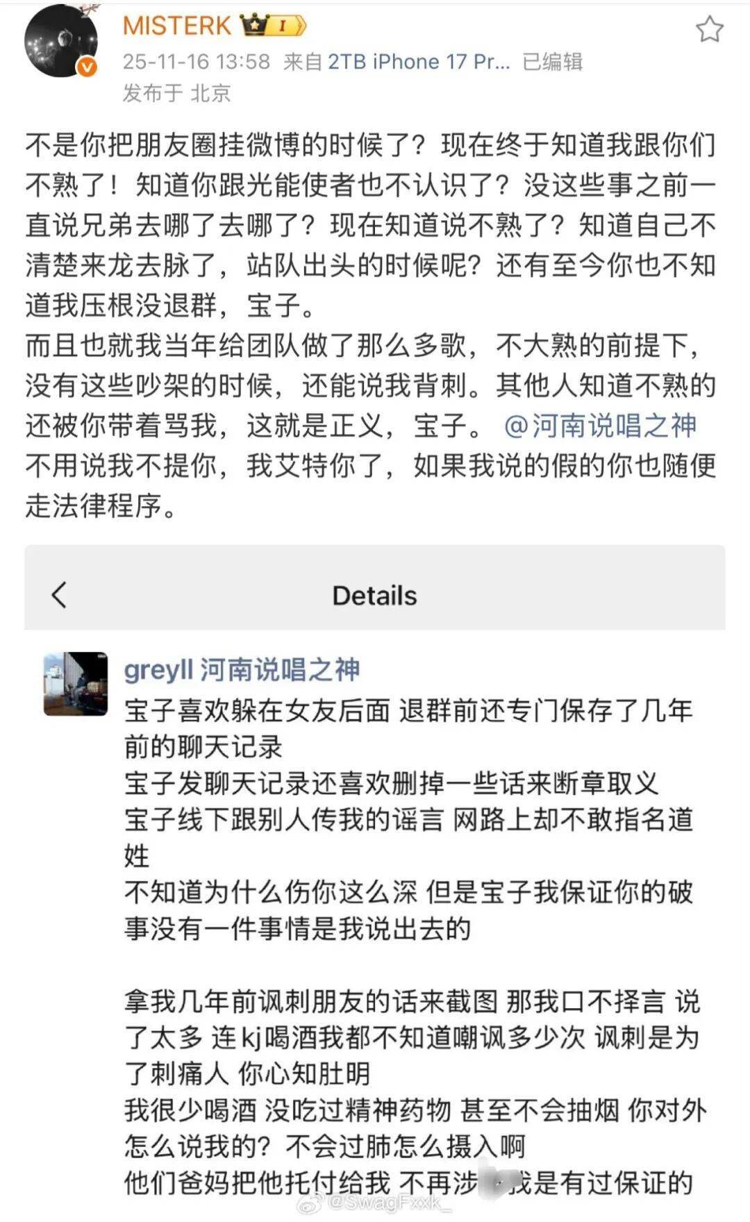 MISTERK透露自己压根没退群,嘲讽河南说唱之神现在知道和他不熟了,站队出头的时候怎么不了解一下来龙去脉?