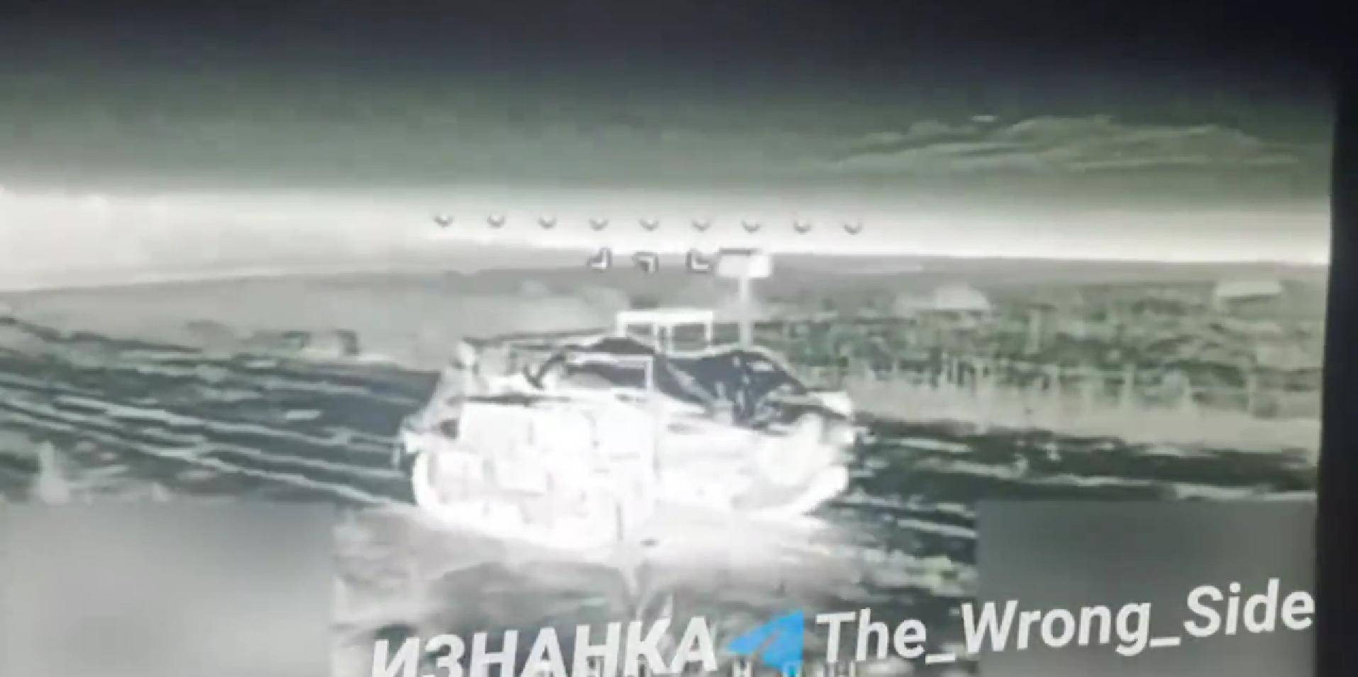乌军公开的,无人战斗车利用深夜,大雾突击红军城的画面