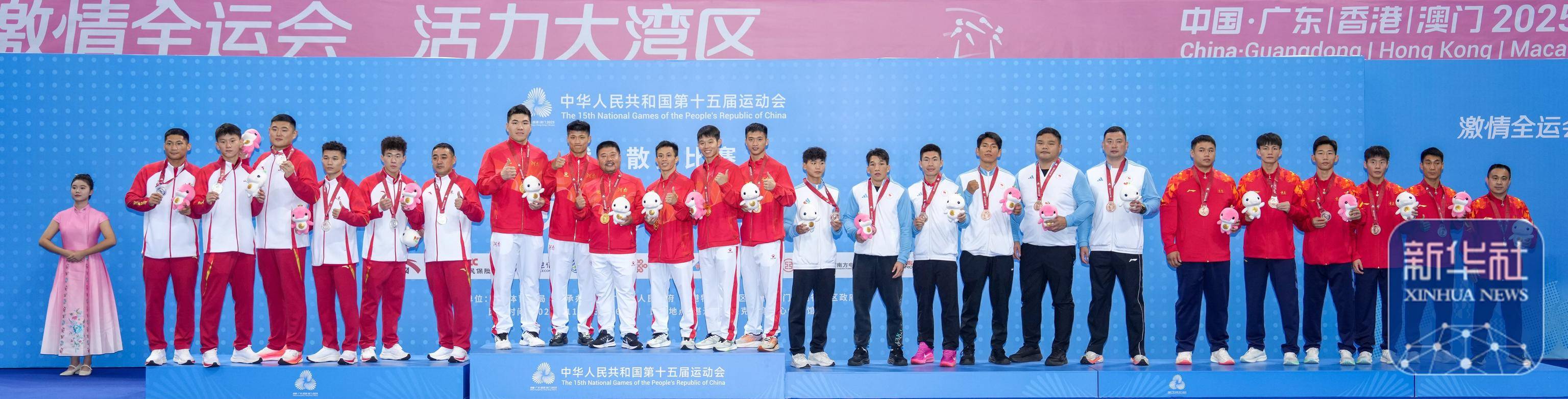 11月16日,在广东省湛江市举行的第十五届全国运动会武术散打男子团体决赛中, 河南队3比1战胜山东队,获得冠军。