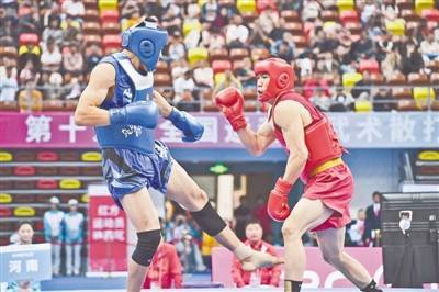 本报湛江专电(记者 刘超峰 文 白韬 图)11月16日晚,全运会武术散打最后五项决赛在湛江奥体中心体育馆结束,在男、女团体决赛中,河南队分别击败北京体育大学和山东队强势摘冠,而在男子90公斤级决赛中,河南队王少华以2∶0击败山东猛将翟辰溪,为河南队在武术散打比赛中拿到一枚个人单项金牌,这也是河南军团在当晚比赛中获得的第三金,出色的表现让河南队成为当晚全运会武术散打赛场最大赢家。