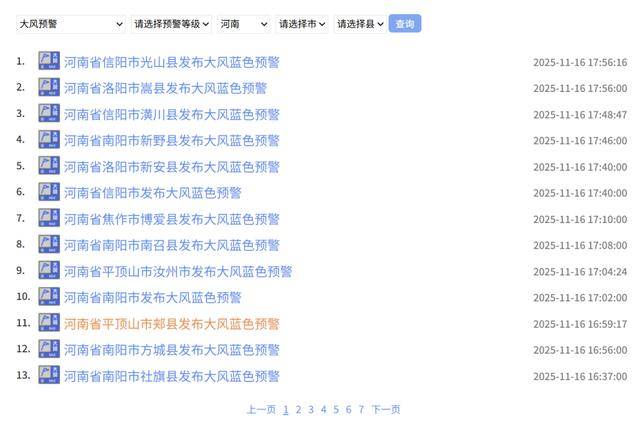 值得注意的是,为提前防范强风影响,近一两天内,河南省及各地气象部门已先后发布近百条大风蓝色预警信息,密集提示公众做好防风准备。大风本就是此次寒冷升级的决定性因素,预警信号的密集发布,也印证了此次风势的强劲。16日下午起,全省已刮起4级左右偏北风,阵风普遍达到7-8级;今天午后到18日,中西部仍有4级左右西北风,阵风7级左右。
