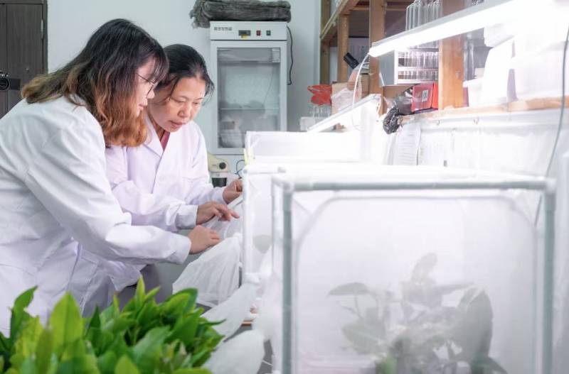 华南农业大学紫金蝉茶团队师生进行茶小绿叶蝉扩繁,助力“百千万工程”。