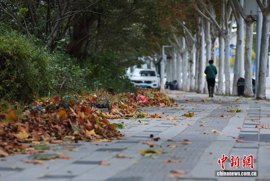 11月17日,受寒潮影响,河南迎降温天气。此轮降温迅猛,全省大部地区最高气温仅达个位数,多地市民纷纷穿着冬装出行。图为郑州市民穿冬装出行。中新社发 王宇 摄