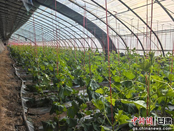 图为瓜州县南岔镇现代设施农业园区大棚的玉菇蜜瓜长势喜人。瓜州县委宣传部供图