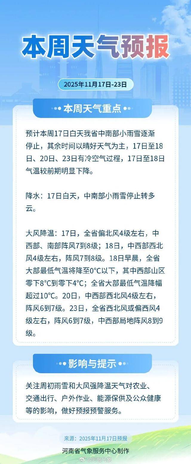11月17日,河南降温进入核心时段,叠加持续大风引发的风寒效应,冷感比实际气温更强烈。