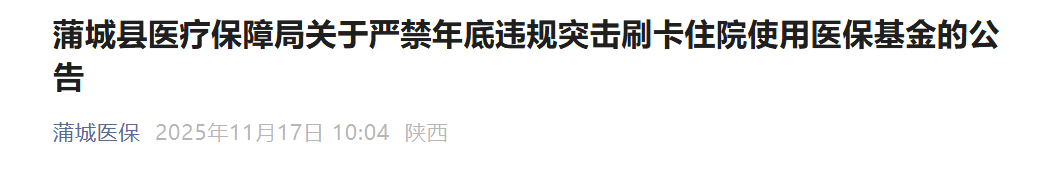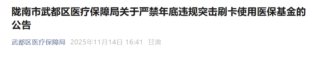 此外,进入11月以来,多地发布公告严禁年底突击使用职工医保门诊统筹和门诊慢特病医保基金,严禁年底违规“集中刷卡”“冲顶消费”等行为。