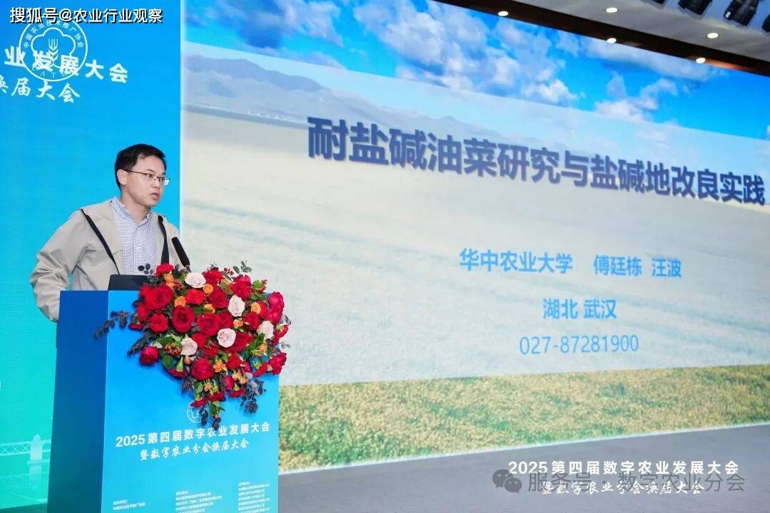 华中农业大学汪波教授代表傅廷栋院士作《耐盐碱油菜与盐碱地改良实践》报告,指出油菜作为改良盐碱地的特色大田作物,在拓展耕地资源方面具有重要价值。