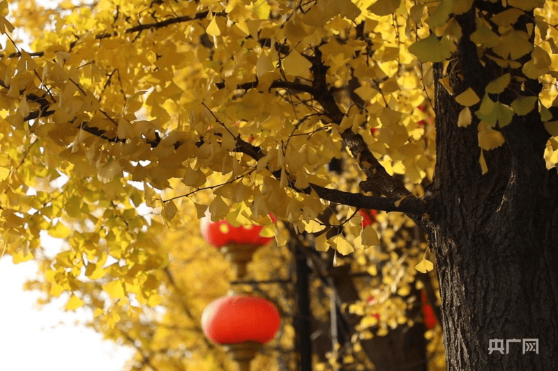 金黄银杏映红灯笼(央广网发 樊安璐 摄)