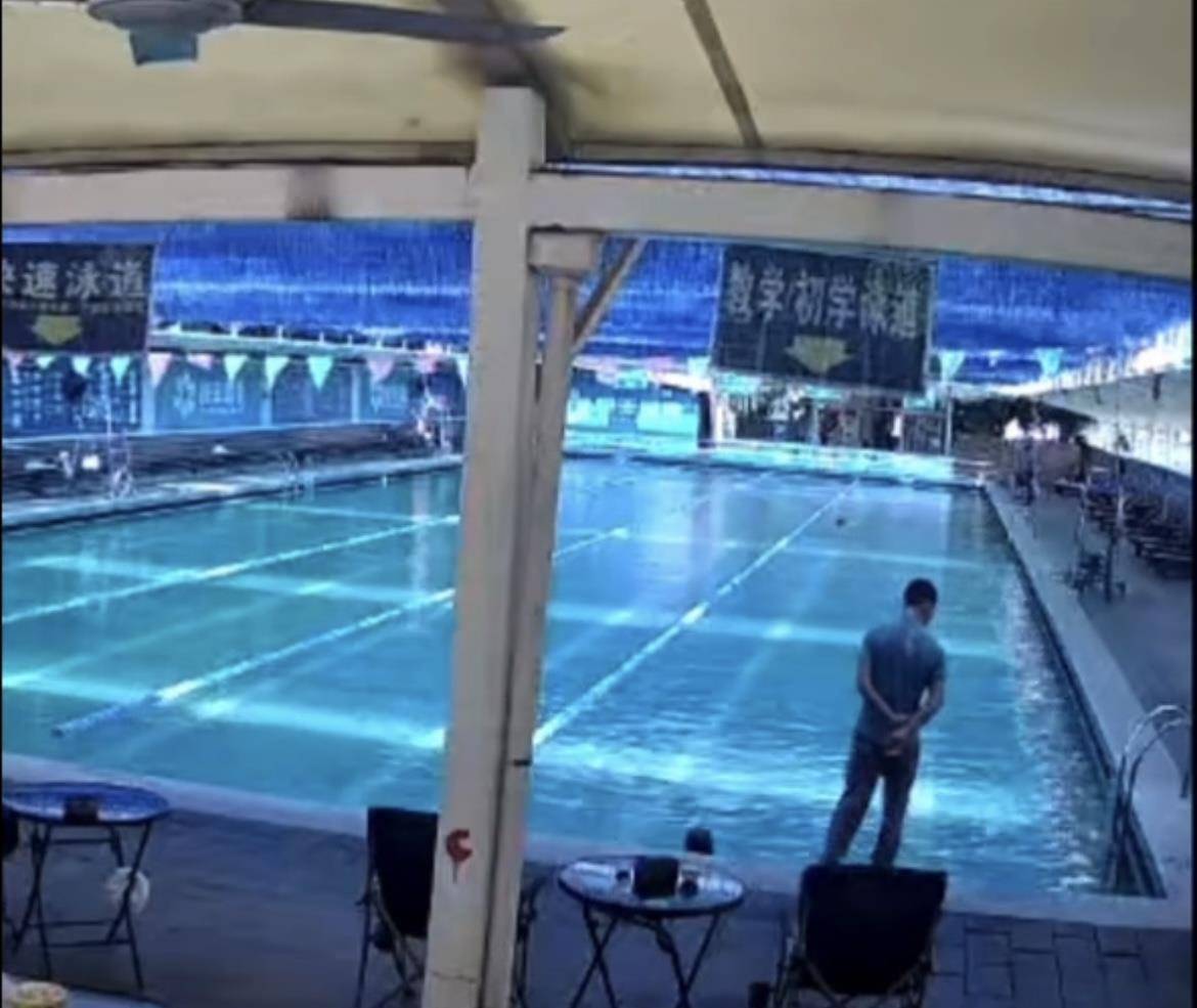 柳女士说,从视频中可见,事发在10点多钟,当时其女婿双脚穿着脚蹼从泳池另一端往回游,到终点后人就没有浮起来,一直沉在水中。有三名救生员当时在现场,其中一名救生员站在女婿沉水处附近观望。还有一名救生员走过来看了一眼,又走开了。最后有救生员发现不对劲,拿一根杆子将人捞起。柳女士说,事发后,三名救生员都不愿开口,泳池方面也没有给说法。