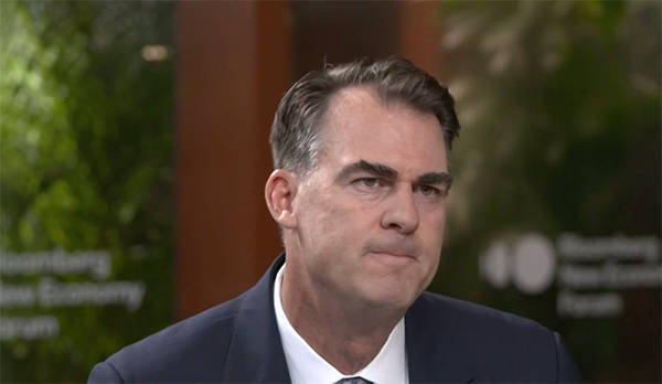 当地时间11月21日,俄克拉荷马州共和党籍州长凯文·斯蒂特(Kevin Stitt)接受彭博社采访视频截图