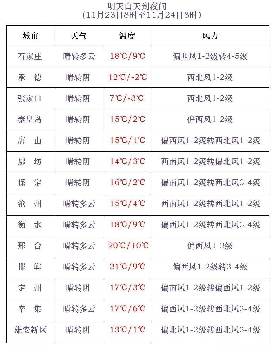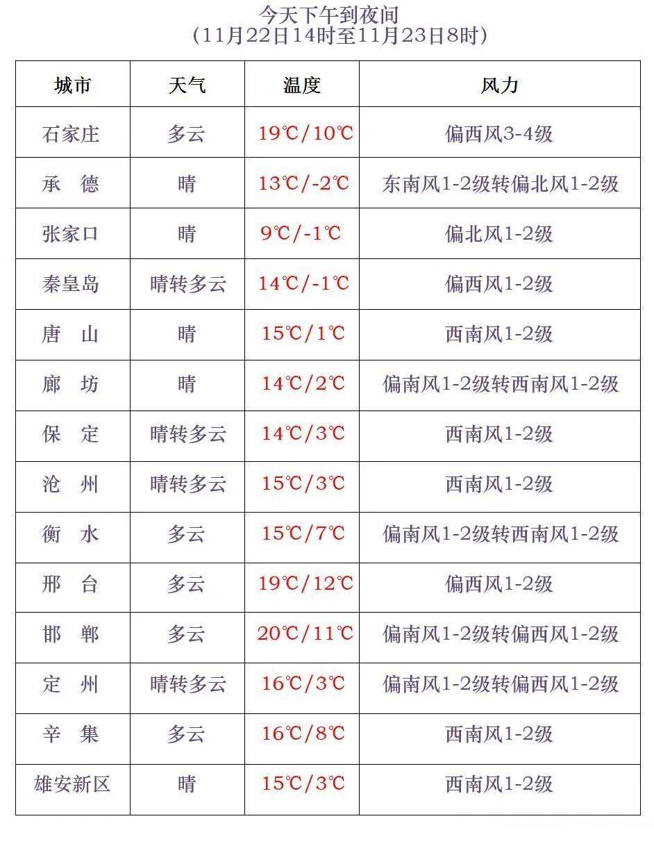 今天下午到夜间,石家庄、沧州以南地区晴转多云,其他地区晴间多云。