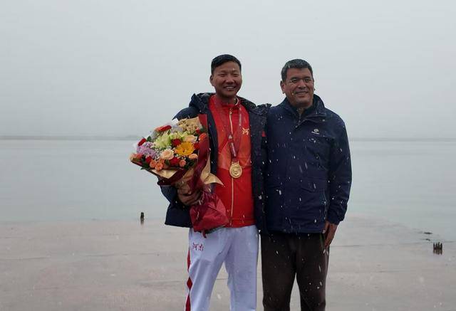 近日,刚从全运会载誉归来的赛艇冠军边世豪和亚军张圣基,一起回到了母校平顶山市水上运动学校,一行人还特意去了曾经训练的白龟湖水域合影留念。
