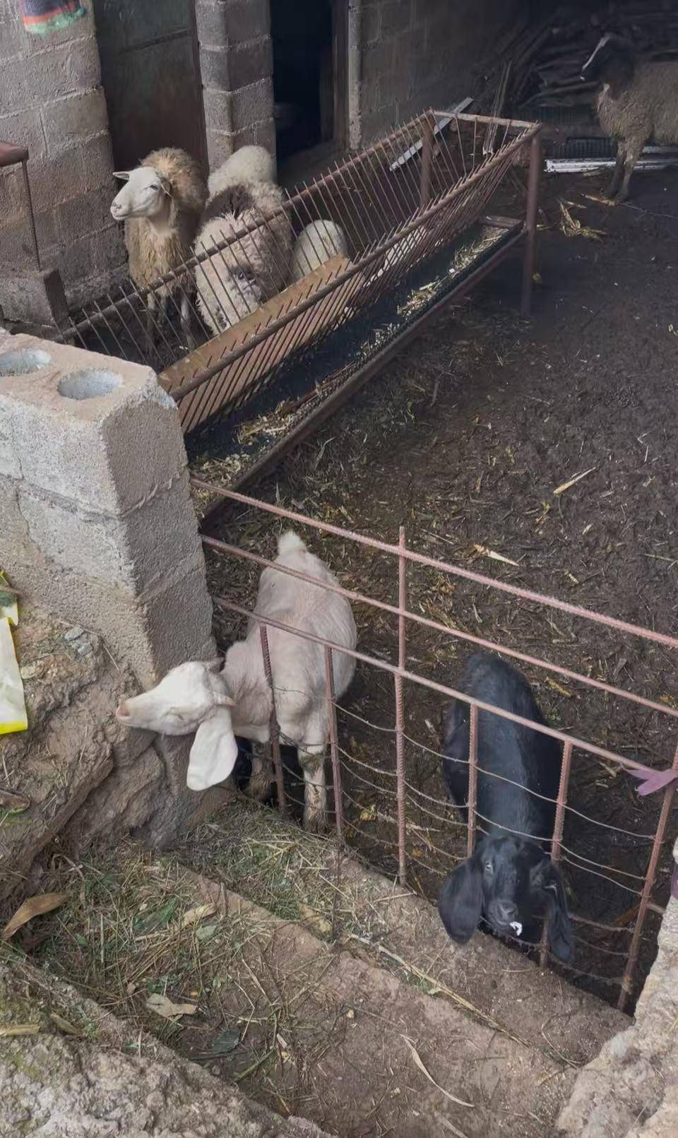 直播结束,小院的红色铁门被打开。没了音乐,这个院子和村里其他农家小院别无二致。两层小楼对面是羊棚,两只小羊从栅栏探出头望着生人。一旁的牛棚里,几头牛在安静进食。牛棚对面是小巧的鸡舍,三叔在舍前搅拌饲料,屋旁的菜地绿油油的,金黄的玉米整齐堆在一侧。