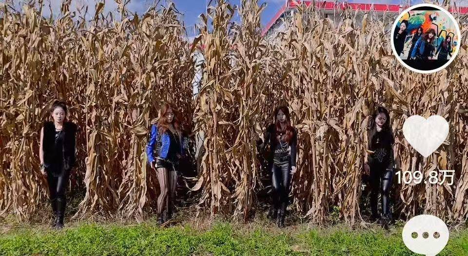 蹦山咔拉咔的走红,给那些既想留在家乡、又暂时没有出路的年轻人带来了一点尝试的勇气,也是一种诱惑。这其中,有四个女孩走进玉米地,开始模仿韩国女团的表演。2025年11月8日,昭通本土女团“土NE1”发布了第一条视频,唱跳2NE1的《Fire》,单条视频获赞百万,六条视频累计涨粉6.4万。