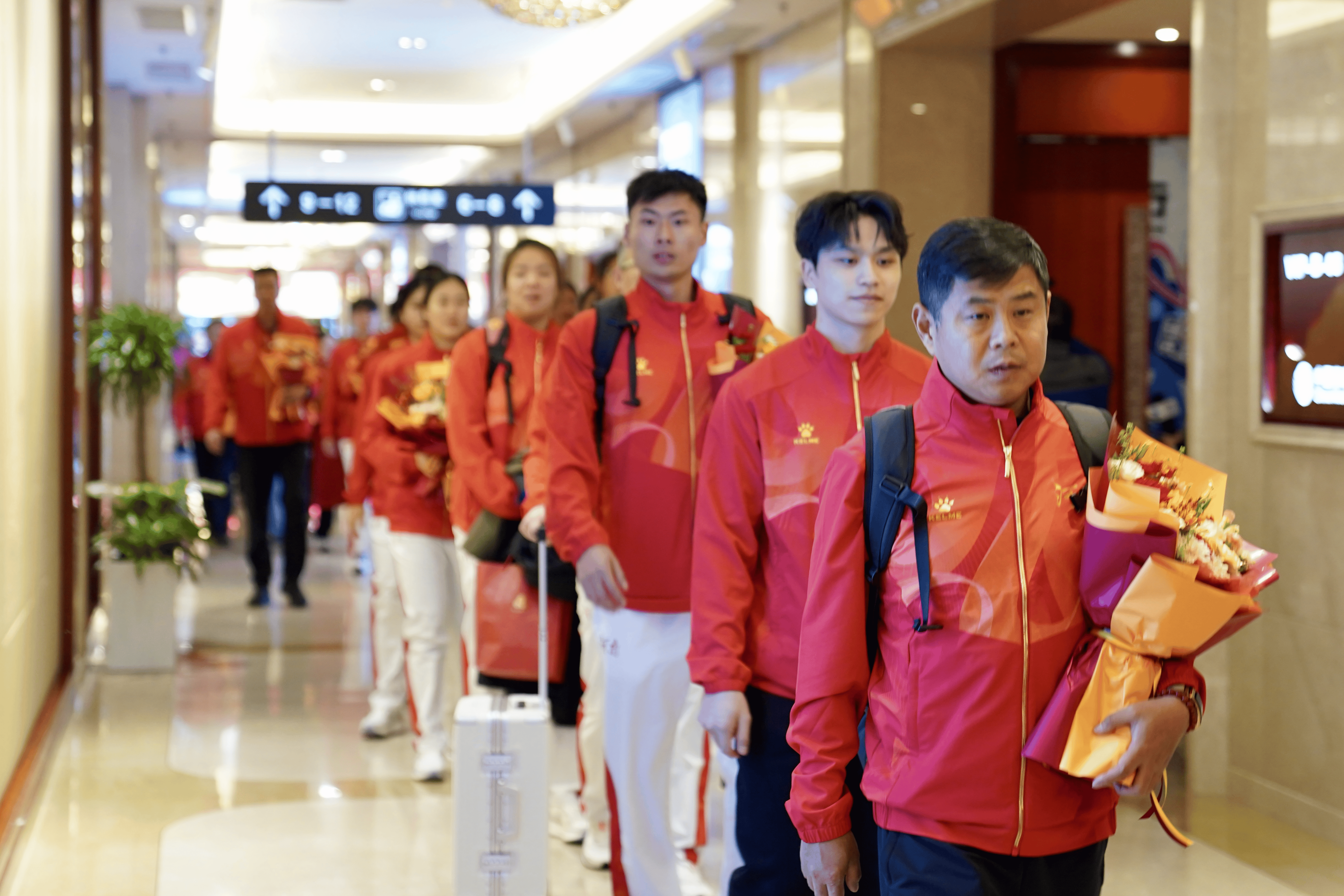 11月22日,参加第十五届全运会的河南代表团运动员、教练、工作人员回到郑州,现场气氛热烈,掌声与鲜花是对他们辛勤付出最好的褒奖。每一次突破,每一枚奖牌,都凝聚着无数日夜的坚持与努力。
