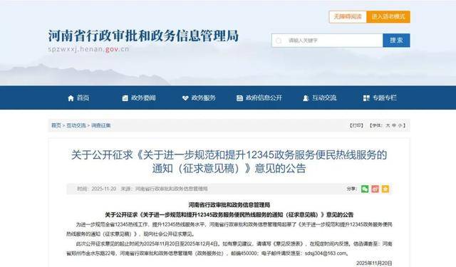 据了解,此次公开征求意见的起止时间为2025年11月20日至2025年12月4日。如有意见建议,可填写《意见反馈表》,在规定时间内反馈。信函请寄至:河南省郑州市金水东路22号,河南省行政审批和政务信息管理局(政务服务处),邮编450000;电子邮件请反馈至:sdsjj304@163.com。(郭栩汝)