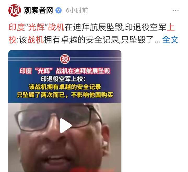 什么叫“谜之自信”?印空军上校竟称“光辉”是全球最安全战斗机,坠机也不影响销售