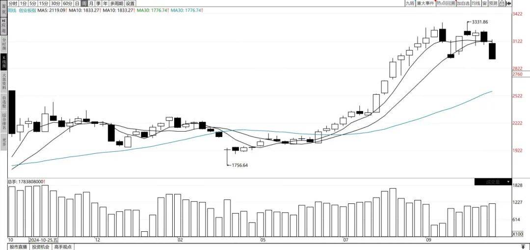 创业板指数周K线图