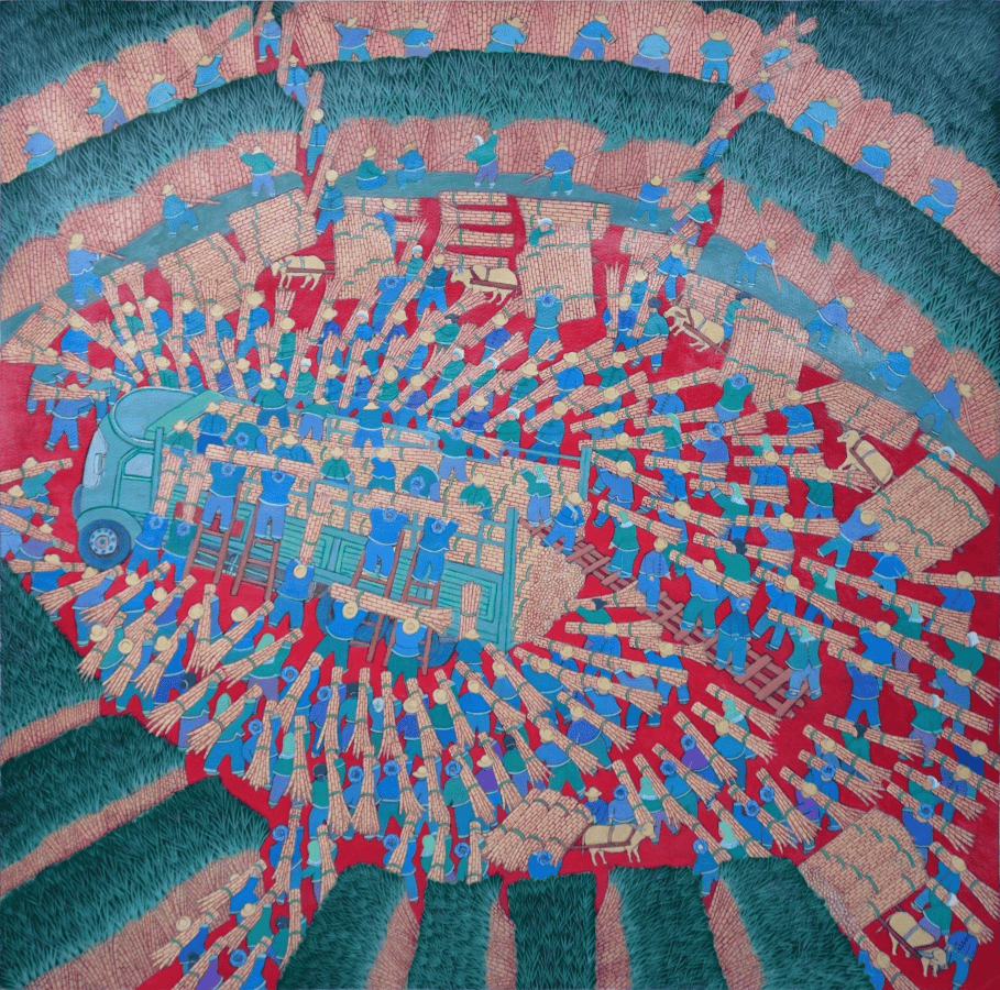 到20世纪80年代,伴随改革开放的春风,全国范围掀起“民间文化热”,各地迅速涌现出近百个农民绘画群体。这些群体以各地文化馆站为创作基地,并在专业美术人员的辅导下进行艺术创作。由此,农民画创作展现出更为鲜明的日常生活视角与情感表现力。农民画家们不再满足于宏大的叙事,而是将画笔探入平凡生活的肌理,着力捕捉与传递质朴而温暖的人间情味。