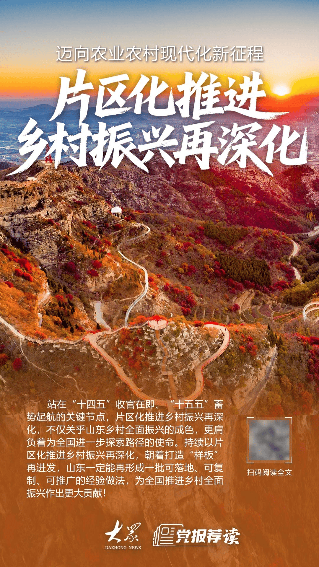 站在“十四五”收官在即、“十五五”蓄势起航的关键节点,片区化推进乡村振兴再深化,不仅关乎山东乡村全面振兴的成色,更肩负着为全国进一步探索路径的使命。持续以片区化推进乡村振兴再深化,朝着打造“样板”再进发,山东一定能再形成一批可落地、可复制、可推广的经验做法,为全国推进乡村全面振兴作出更大贡献!