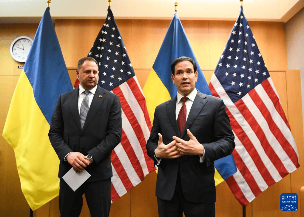 当地时间2025年11月23日,瑞士日内瓦,在美国常驻联合国日内瓦办事处代表团驻地,美国国务卿鲁比奥(右)在记者会上发言。针对美方就结束俄乌冲突提出的28点新计划,美国、乌克兰、欧盟及英法德三国代表23日在瑞士日内瓦举行会谈。美国国务卿鲁比奥、美国中东问题特使威特科夫代表美方出席此次会谈,乌克兰代表团由乌总统办公室主任叶尔马克率领。此外,法国、德国和英国的国家安全顾问以及欧盟代表也参加磋商。新华社记者 连漪 摄