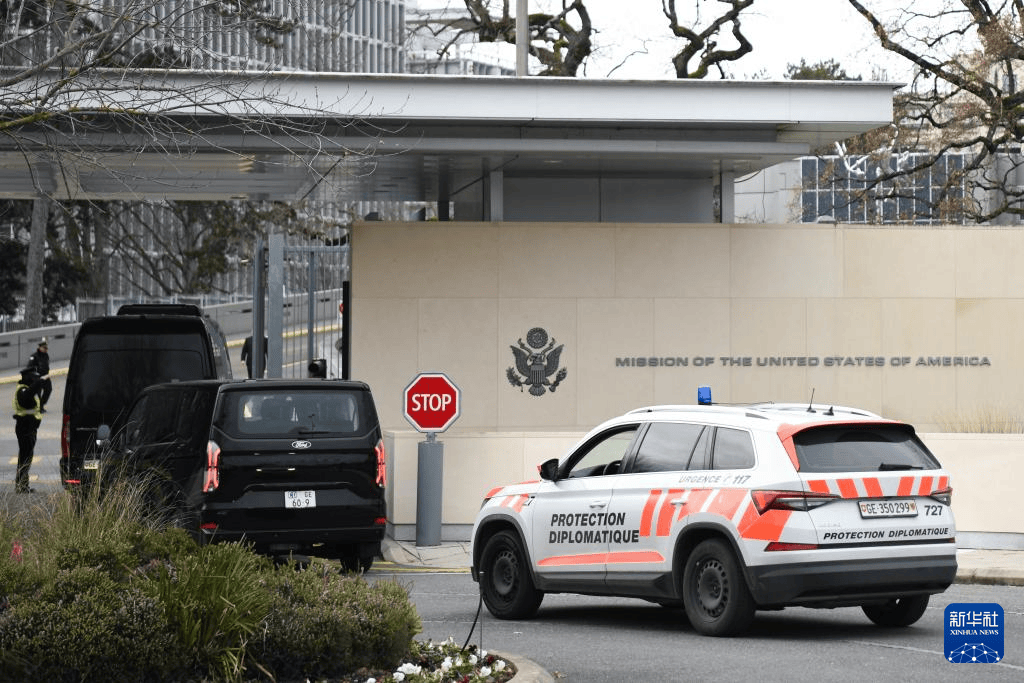 当地时间2025年11月23日,瑞士日内瓦,外交车辆进入美国常驻联合国日内瓦办事处代表团驻地。针对美方就结束俄乌冲突提出的28点新计划,美国、乌克兰、欧盟及英法德三国代表23日在瑞士日内瓦举行会谈。美国国务卿鲁比奥、美国中东问题特使威特科夫代表美方出席此次会谈,乌克兰代表团由乌总统办公室主任叶尔马克率领。此外,法国、德国和英国的国家安全顾问以及欧盟代表也参加磋商。新华社记者 连漪 摄