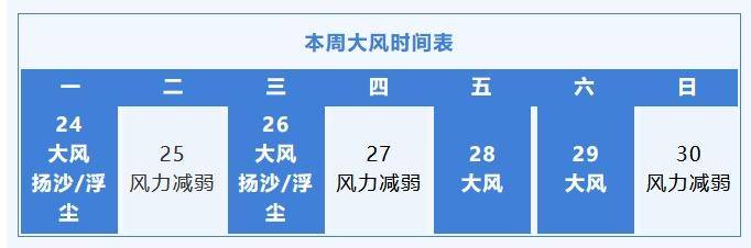 26日随着新一股冷空气补充南下,大风再起,预计全省风力4到5级,阵风7级左右,中西部阵风9-10级,大部地区伴有扬沙或浮尘。