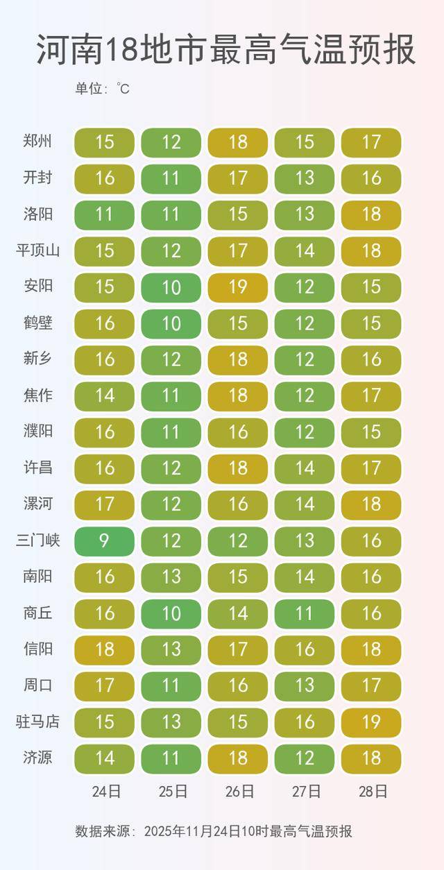 受多轮冷空气影响,本周我省气温坐上过山车,呈现降-升-降-升的态势,最高气温变幅普遍在3-6度。最低气温起伏不大,大部地区在0-3度,西部山区零下4度到0度,早晚仍要注意保暖。