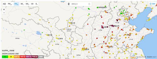 图1 11月24日10时PM10浓度分布图(来源中国环境监测总站)