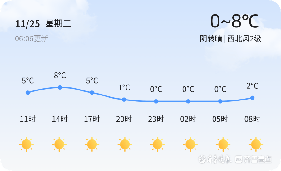 今天是11月25日,农历十月初六。滨州迎来阴转晴天气,气温在0℃至8℃之间,西北风2级,空气湿度45%。空气质量指数为14,属于优等,适合户外活动。不过,受冷空气影响,博兴、无棣等地发布了大风蓝色预警,市民出行需注意保暖,防范大风对交通的影响。