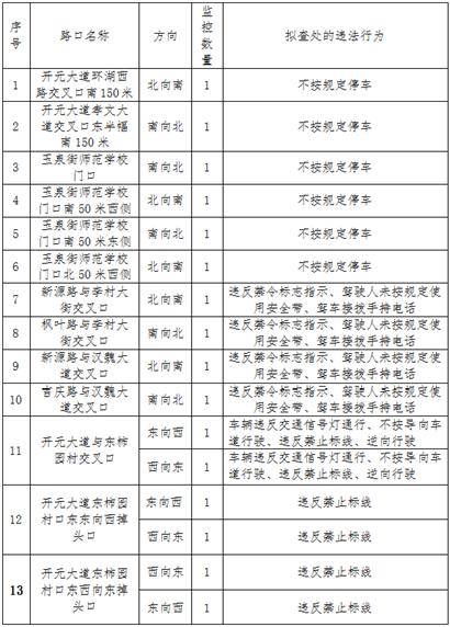 现向社会公示监控设备设置地点及查处的道路交通违法行为,希望广大群众自觉遵守交通法规,共同维护道路交通秩序。
