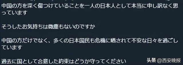 帖文大意:作为一名日本人,我对深深伤害中国人民的行为深感愧疚。请务必遵守国家间过去达成的承诺。