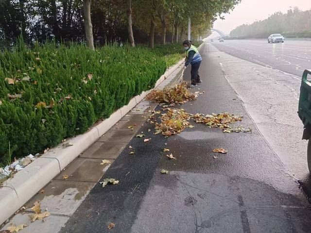 金水区城管环卫部门采取“清扫—归拢—装袋—定位—清运”的“点对点”闭环管理模式,确保落叶不堆积、不滞留、不二次污染;惠济区城管部门加大对落叶集中区域的机械化作业频次,安排高压清洗车、扫路车对主次干道进行循环清扫,确保落叶及时清运。
