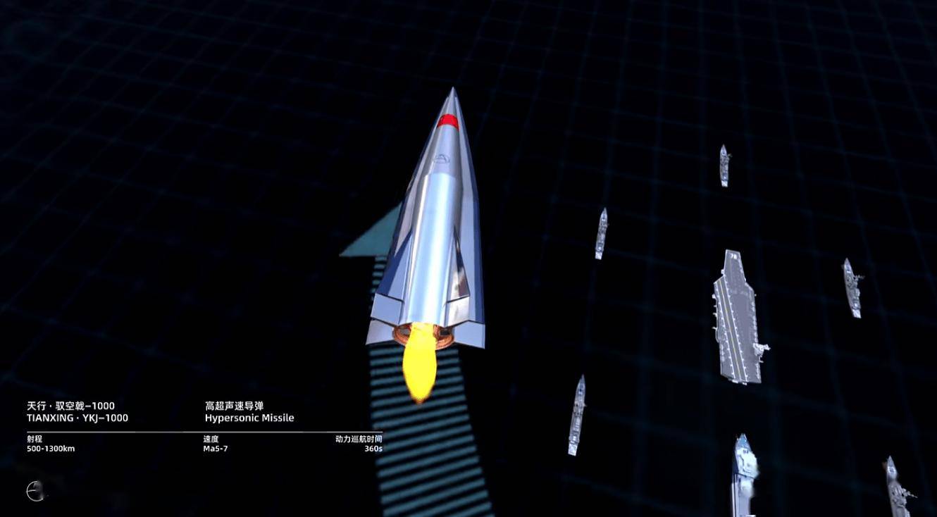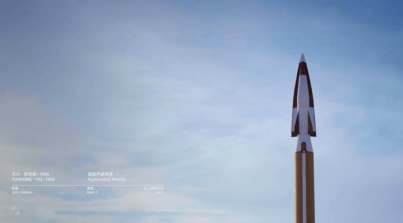 官方介绍视频显示,驭空戟-1000 高超声速导弹支持 500-1300 公里射程、5-7 马赫飞行速度及 360 秒动力巡航时间。
