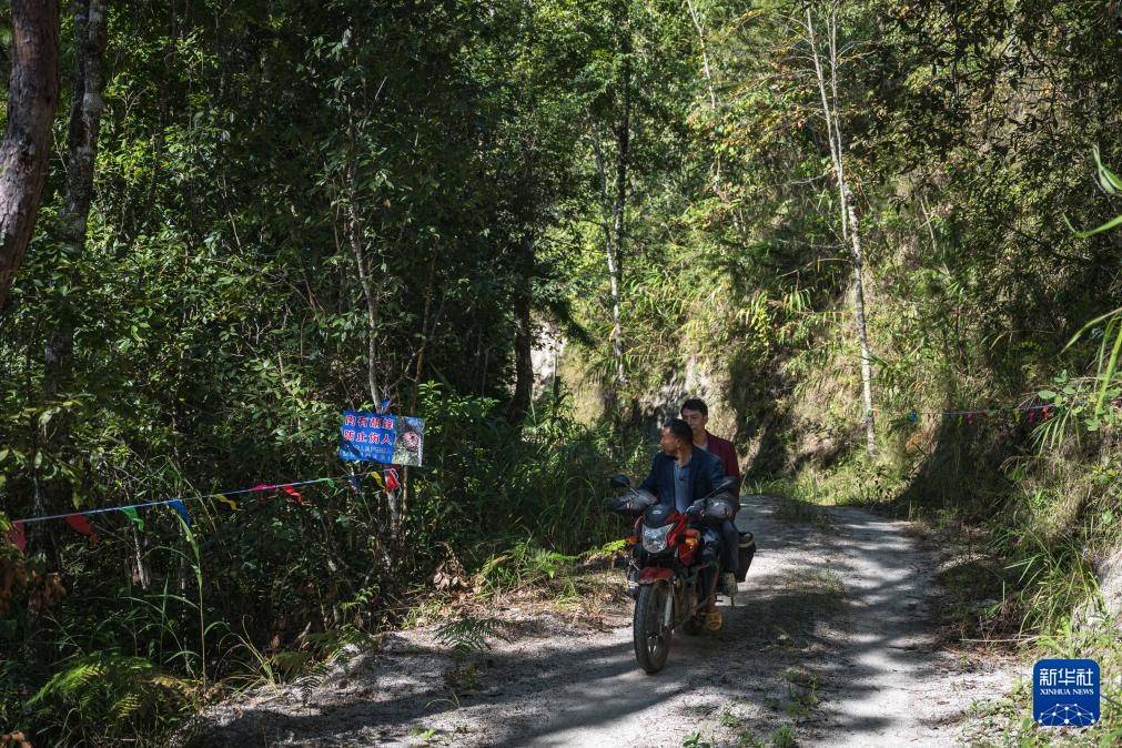 11月19日,在云南省保山市龙陵县龙山镇,黄氏蜂业有限公司工作人员在检查一处警示线。