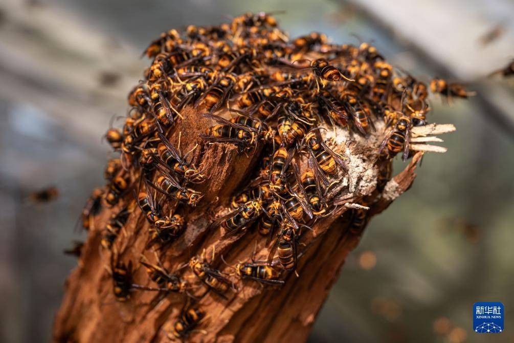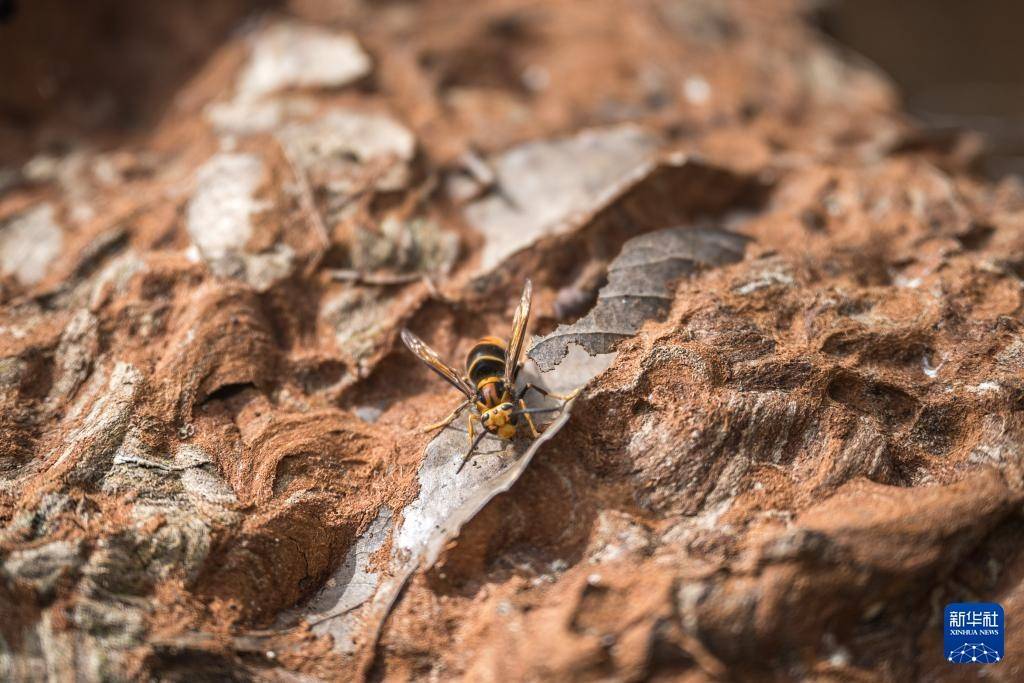 这是11月19日在云南省保山市龙陵县龙山镇黄氏蜂业有限公司育蜂棚内拍摄的胡蜂。