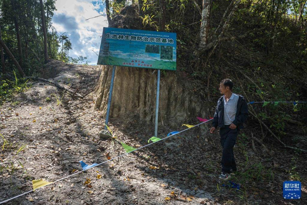 11月19日,在云南省保山市龙陵县龙山镇,黄氏蜂业有限公司巡逻人在胡蜂养殖区域巡逻。