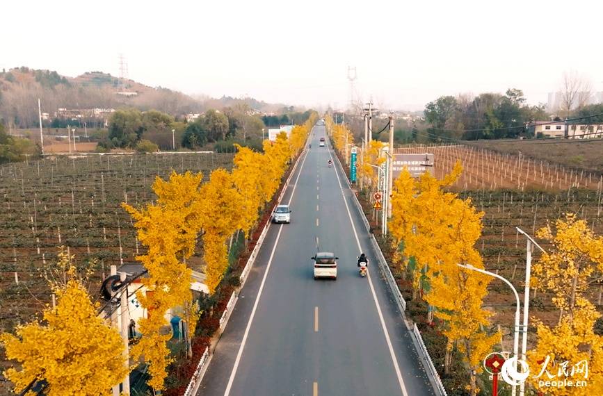 道路笔直地伸向远方,路边的银杏树正吐露着醉人的金黄。