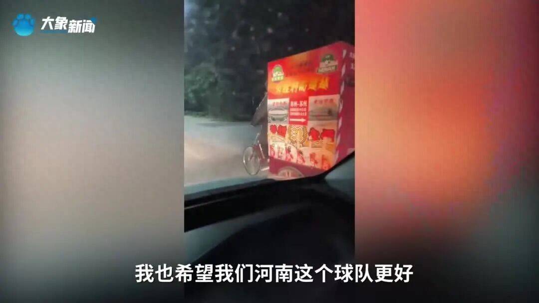 骑行者万先生称,自己以这种方式观看比赛,主要是为了给家乡的球队加油助威,希望河南球队能越来越好,也挑战一下自己,最后终于做到了。