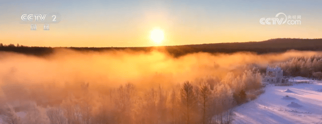 在黑河市逊克县克林镇,库尔滨水电站常年排放的4℃温水,与连日来寒冷的空气相结合,最终在库尔滨河两岸的树木上凝练成晶莹的雾凇。流动的河水蜿蜒向前,与岸边树林相映成趣,构成如诗如画的“雾凇画廊”。据了解,这里的雾凇景观从每年11月末会一直持续到次年3月初。