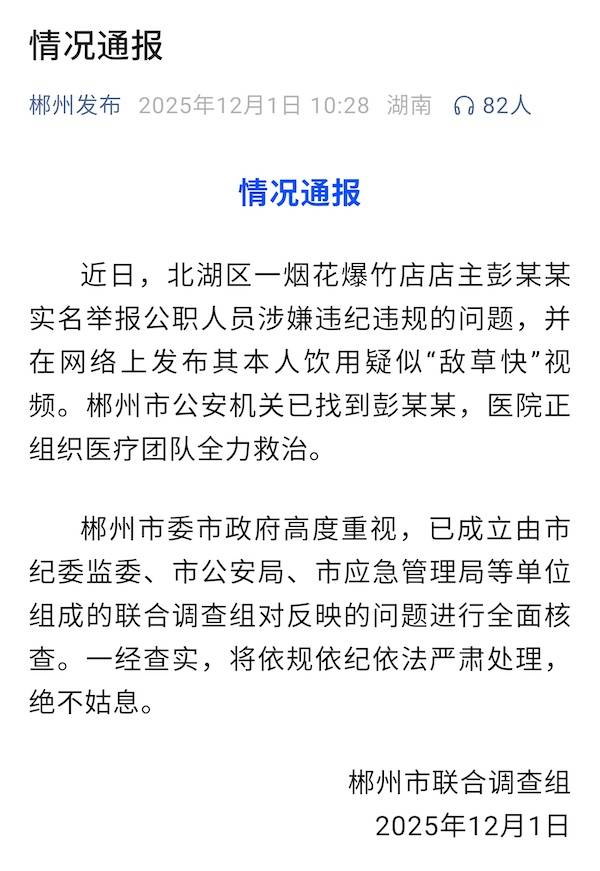 郴州市勇鑫烟花零售店老板彭某某的故事已经传开了。媒体报道,39岁的他举报当地多名公职人员吃拿卡要、懒政和搞一刀切。11月30日上午,他点燃自己的烟花店,然后在微信群留下“下辈子见”的消息,喝下高于致死量很多倍的农药“敌草快”,经抢救无效于12月2日去世。