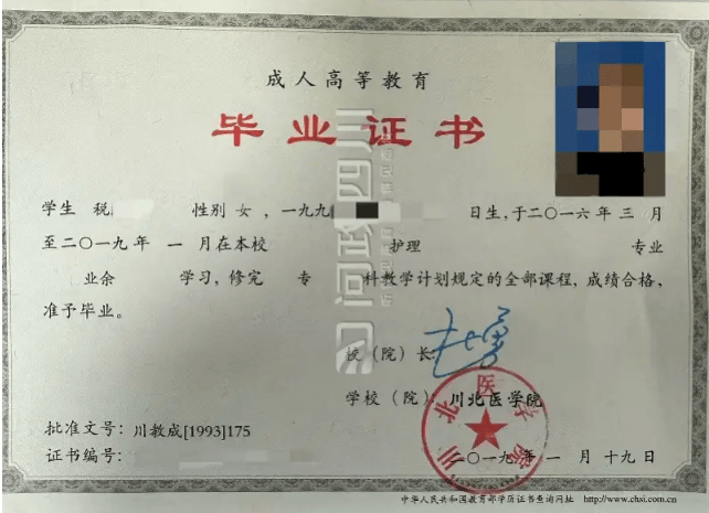 该生在该校就读中专期间因当时政策许可,2015年参加成人高考合格后,于2016年3月至2019年1月在川北医学院成人教育学院参加护理学专业大专班业余学习,成绩合格毕业。