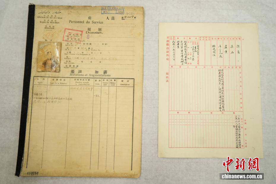 河南省档案馆近日公布一份题为《中华国有京汉铁路管理局吴石履历表》的珍贵档案,为吴石将军早年工作经历提供了新的史料线索。12月4日,记者在河南省档案馆特藏档案库查阅并拍摄了这份档案。图为吴石在京汉铁路管理局的履历表(左、部分)和职员录(右、局部)。中新社记者 范晓恒 摄